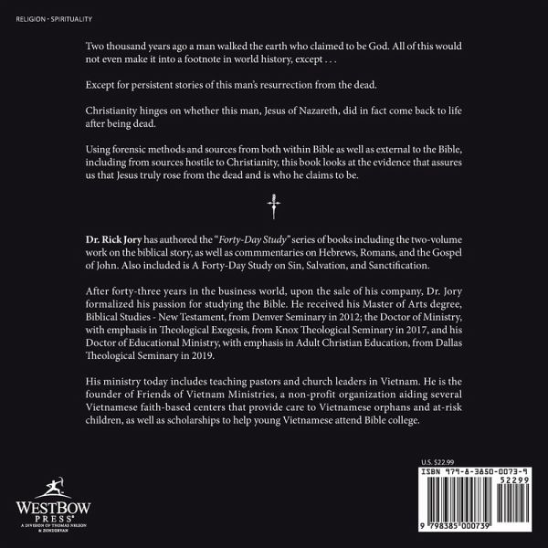Two thousand years ago a man walked the earth who claimed to be God. All of this would not even make it into a footnote in world history, except . . . Except for persistent stories of this man's resurrection from the dead. Christianity hinges on whether this man, Jesus of Nazareth, did in fact come back to life after being dead. Using forensic methods and sources from both within Bible as well as external to the Bible, including from sources hostile to Christianity, this book looks at the evidence that assures us that Jesus truly rose from the dead and is who he claims to be.