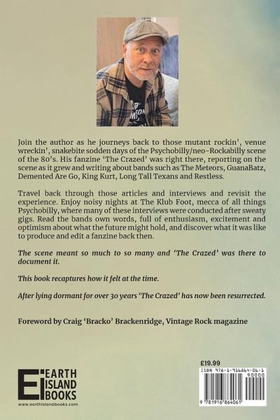 In Paul's teenage years during the 1980's he was totally captured by the Psychobilly, Garage and Rockabilly scene. He couldn't play an instrument and really didn't have the patience to learn but really wanted to get recognised within the scene. He had an inquisitive mind and decided to attempt to produce a fanzine which would give him the opportunity to meet and question many of the bands whose records he was so religiously buying. The first interview he conducted was with arguably the biggest Psychobilly band in England - The Meteors. This set-in motion a series of interviews with other bands and musicians within the scene, many of whom had not been given any exposure from the English music press. Many a Saturday afternoon saw him spending his hard-earned cash to jump on the train and travel up to the legendary Psychobilly venue in Hammersmith, The Klub Foot, a few interviews were actually conducted there. His fanzine was called 'The Crazed' and lasted for just four issues, but featured interviews with quite a few of the leading 80's Psychobilly/Rockabilly bands, such as The Meteors, GuanaBatz, Demented Are Go, Restless and more. For a while within the 1980's the scene shone, but like most things, eventually faded along with his enthusiasm for producing the fanzine.'The Crazed' became a yellowing photocopied memory put away in a drawer and forgotten about for years. It wasn't until many years later that 'The Crazed' emerged again in Craig Brackenridge's book about Psychobilly, 'Hell Bent on Rockin'. Parts of Paul's interview with the GuanaBatz was also featured within the CD booklet for Cherry Red Records re-release of their second album, 'Loan Sharks'. Paul was then interviewed about 'The Crazed' by the 'Ole School Psychobilly' website and this led to the genesis of the idea for the book. The creation of 'The Crazed' book has been quite a journey, with new friendships made, and a few lost.Old friendships were resurrected, with an understanding of why some of those were never maintained. Paul travelled back to those heady times in the 80's where music and fashion ruled his life and re-captured his enthusiasm for the Psychobilly / Rockabilly scene. Paul lives in Kent with his family and still maintains a strong interest in many different genres of music.