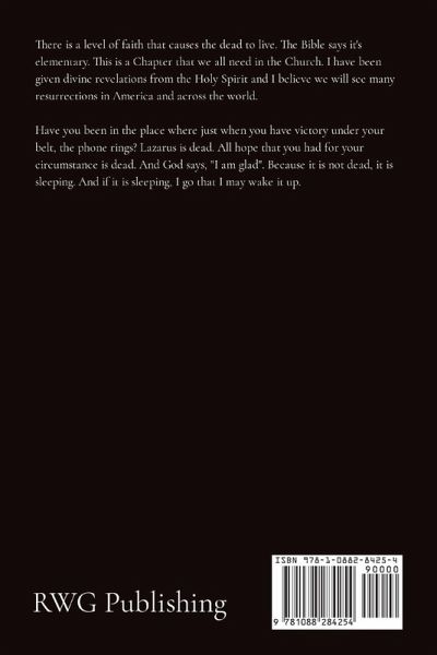 There is a level of faith that causes the dead to live. The Bible says it's elementary. This is a Chapter that we all need in the Church. I have been given divine revelations from the Holy Spirit and I believe we will see many resurrections in America and across the world. Have you been in the place where just when you have victory under your belt, the phone rings? Lazarus is dead. All hope that you had for your circumstance is dead. And God says, "I am glad". Because it is not dead, it is sleeping. And if it is sleeping, I go that I may wake it up.