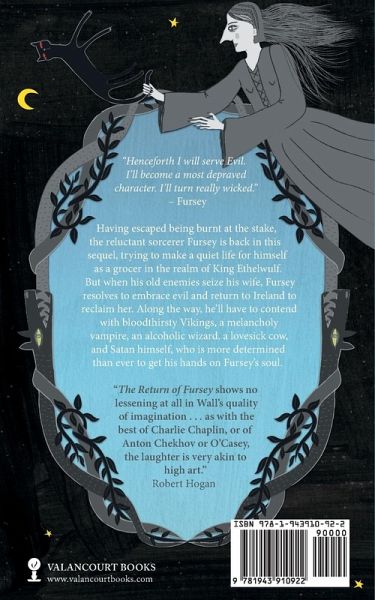 "Henceforth I will serve Evil. I'll become a most depraved character. I'll turn really wicked." - Fursey Having escaped being burnt at the stake, the reluctant sorcerer Fursey is back in this sequel, trying to make a quiet life for himself as a grocer in the realm of King Ethelwulf. But when his old enemies seize his wife, Fursey resolves to embrace evil and return to Ireland to reclaim her. Along the way, he'll have to contend with bloodthirsty Vikings, a melancholy vampire, an alcoholic wizard, a lovesick cow, and Satan himself, who is more determined than ever to get his hands on Fursey's soul. "The Return of Fursey shows no lessening at all in Wall's quality of imagination ... as with the best of Charlie Chaplin, or of Anton Chekhov or O'Casey, the laughter is very akin to high art." - Robert Hogan "For anyone who doesn't know Fursey, this opportunity to do so is not to be missed." - George O'Brien, Dublin Book Review "The Unfortunate Fursey and The Return of Fursey are not quaint esoterica for the specialist, folks, they are living masterpieces. They haven't dated slightly and are as fresh and as powerful as when they were first written." - Darrell Schweitzer "The Unfortunate Fursey and its 1948 sequel, The Return of Fursey, have been called the Irish equivalent to T.H. White's The Once and Future King ... If you enjoy the dry, ironic humour of John Collier, Roald Dahl, Saki, or Jack Vance (and you should), you will like Fursey." - Michael Dirda, Essays and Literary Entertainments