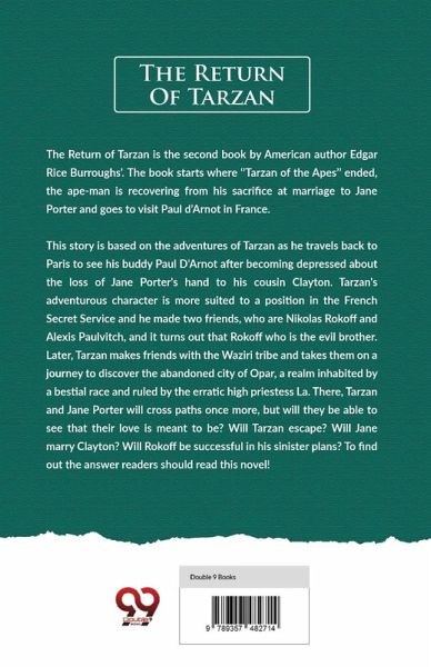 The Return of Tarzan is the second book by American author Edgar Rice Burroughs'. The book starts where ''Tarzan of the Apes'' ended, the ape-man is recovering from his sacrifice at marriage to Jane Porter and goes to visit Paul d'Arnot in France. This story is based on the adventures of Tarzan as he travels back to Paris to see his buddy Paul D'Arnot after becoming depressed about the loss of Jane Porter's hand to his cousin Clayton. Tarzan's adventurous character is more suited to a position in the French Secret Service and he made two friends, who are Nikolas Rokoff and Alexis Paulvitch,…mehr