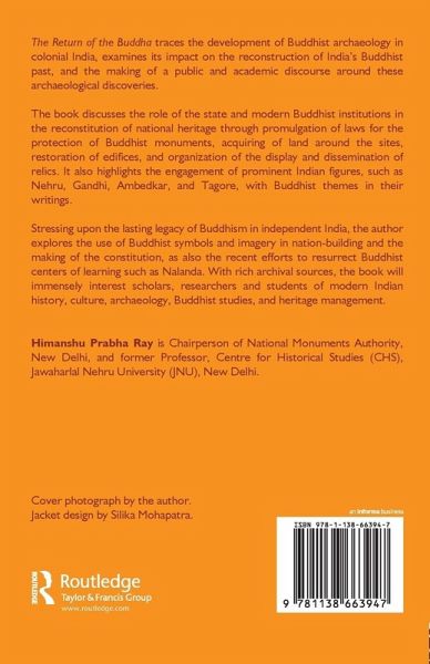 The Return of the Buddha traces the development of Buddhist archaeology in colonial India, examines its impact on the reconstruction of India's Buddhist past, and the making of a public and academic discourse around these archaeological discoveries. The book discusses the role of the state and modern Buddhist institutions in the reconstitution of national heritage through promulgation of laws for the protection of Buddhist monuments, acquiring of land around the sites, restoration of edifices, and organization of the display and dissemination of relics. It also highlights the engagement of prominent Indian figures, such as Nehru, Gandhi, Ambedkar, and Tagore, with Buddhist themes in their writings. Stressing upon the lasting legacy of Buddhism in independent India, the author explores the use of Buddhist symbols and imagery in nation-building and the making of the constitution, as also the recent efforts to resurrect Buddhist centers of learning such as Nalanda. With rich archival sources, the book will immensely interest scholars, researchers and students of modern Indian history, culture, archaeology, Buddhist studies, and heritage management.