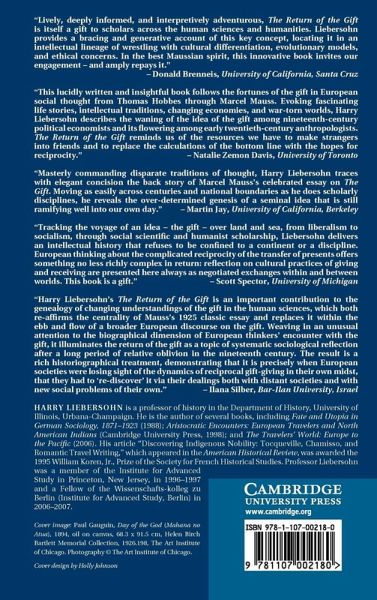 This book is a history of European interpretations of the gift from the mid-seventeenth to the early twentieth century. Reciprocal gift exchange, pervasive in traditional European society, disappeared from the discourse of nineteenth-century social theory only to return as a major theme in twentieth-century anthropology, sociology, history, philosophy and literary studies. Modern anthropologists encountered gift exchange in Oceania and the Pacific Northwest and returned the idea to European social thought; Marcel Mauss synthesized their insights with his own readings from remote times and places in his famous 1925 essay on the gift, the starting-point for subsequent discussion. The Return of the Gift demonstrates how European intellectual history can gain fresh significance from global contexts.