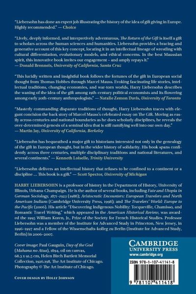 This book is a history of European interpretations of the gift from the mid-seventeenth to the early twentieth century. Reciprocal gift exchange, pervasive in traditional European society, disappeared from the discourse of nineteenth-century social theory only to return as a major theme in twentieth-century anthropology, sociology, history, philosophy and literary studies. Modern anthropologists encountered gift exchange in Oceania and the Pacific Northwest and returned the idea to European social thought; Marcel Mauss synthesized their insights with his own readings from remote times and places in his famous 1925 essay on the gift, the starting-point for subsequent discussion. The Return of the Gift demonstrates how European intellectual history can gain fresh significance from global contexts.