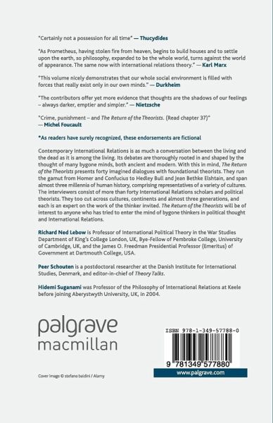 Contemporary International Relations is as much a conversation between the living and the dead as it is among the living. Its debates are thoroughly rooted in and shaped by the thought of many bygone minds, both ancient and modern. With this in mind, The Return of the Theorists presents forty imagined dialogues with foundational theorists. They run the gamut from Homer and Confucius to Hedley Bull and Jean Bethke Elshtain, and span almost three millennia of human history, comprising representatives of a variety of cultures. The interviewers consist of more than forty international relations scholars and political theorists. They too cut across cultures, continents and almost three generations, and each is an expert on the work of the thinker invited. The Return of the Theorists will be of interest to anyone who has tried to enter the mind of bygone thinkers in political thought and International Relations.