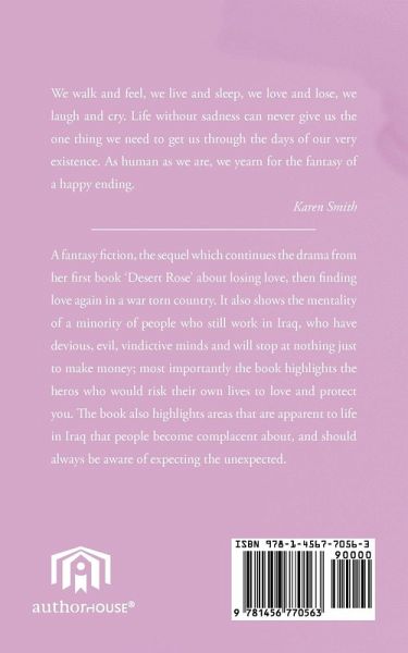 Fictional account in which Karen draws you back in to Mia's world after her first year in Iraq. She continues the drama with the sequel from her first book 'Desert Rose' about losing love, then finding love again in a war torn country. It also shows the mentality of a minority of people who still work in Iraq, who have devious, evil, vindictive minds and will stop at nothing just to make money; most importantly the book highlights the heros who would risk their own lives to love or protect you. The book also highlights areas that still are apparent to life in Iraq that people become complacent about and should always be aware of expecting the unexpected.