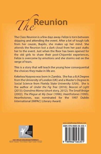 The Class Reunion is a few days away. Felize is torn between skipping and attending the event. After a lot of tough talk from her cousin, Bupilo, she makes up her mind. She attends the Reunion but a dark cloud from her past stalks her to the event. Just when the ˜oor has been opened for the old girls to share their post-Chipembi experiences, Felize is overcome by emotions and she storms out on the verge of tears. This is a story that will teach the young how consequential the choices they make in life are.