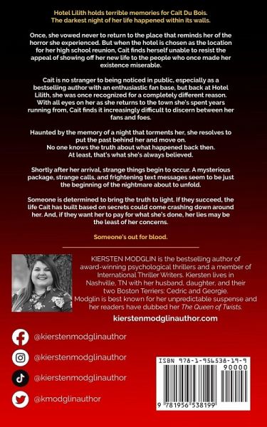 Hotel Lilith holds terrible memories for Cait Du Bois. The darkest night of her life happened within its walls. Once, she vowed never to return to the place that reminds her of the horror she experienced. But when the hotel is chosen as the location for her high school reunion, Cait finds herself unable to resist the appeal of showing off her new life to the people who once made her existence miserable. Cait is no stranger to being noticed in public, especially as a bestselling author with an enthusiastic fan base, but back at Hotel Lilith, she was once recognized for a completely different reason. With all eyes on her as she returns to the town she's spent years running from, Cait finds it increasingly difficult to discern between her fans and foes. Haunted by the memory of a night that torments her, she resolves to put the past behind her and move on. No one knows the truth about what happened back then. At least, that's what she's always believed. Shortly after her arrival, strange things begin to occur. A mysterious package, strange calls, and frightening text messages seem to be just the beginning of the nightmare about to unfold. Someone is determined to bring the truth to light. If they succeed, the life Cait has built based on secrets could come crashing down around her. And, if they want her to pay for what she's done, her lies may be the least of her concerns. Someone's out for blood. ¿