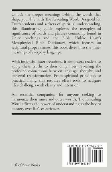 Unlock the deeper meanings behind the words that shape your life with The Revealing Word. Designed for Truth students and seekers of spiritual understanding, this illuminating guide explores the metaphysical significance of words and phrases commonly found in Unity teachings and the Bible. Unlike Unity's Metaphysical Bible Dictionary, which focuses on scriptural proper names, this book dives into the inner meanings of everyday language. With insightful interpretations, it empowers readers to apply these truths to their daily lives, revealing the profound connections between language, thought, and personal transformation. From spiritual principles to practical living, this resource offers tools to navigate life's challenges with clarity and intention. An essential companion for anyone seeking to harmonize their inner and outer worlds, The Revealing Word affirms the power of understanding as the key to mastery over life's experiences.