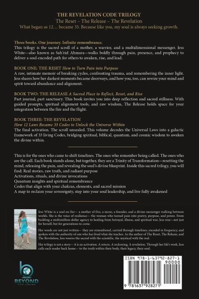 You mastered the hustle-but your soul still feels hungry. You don't need another strategy-you need a Revelation. A trilogy to reset your nervous system, release your limits, and rise into the leader you were born to be- in business, and in your own life. The Revelation Code Trilogy by Jess White Three books. One sacred journey. For those called to build empires-with their soul intact. Book One: The Reset - How to Turn Pain into Purpose This is where your story begins again. Jess White shares her raw, unfiltered truth of rebuilding after loss-business collapse, health crises, heartbreak. Through each page, you'll find permission to pause, realign, and reignite the fire within. Book Two: The Release - A Sacred Place to Reflect, Reset, and Rise You can't lead from a place you're afraid to look. This volume guides you to shed the patterns, pain, and pressure that no longer serve you. This is where the inner work begins-so the outer world can finally shift. Book Three: The Revelation - How 12 Laws Became 33 Codes to Unlock the Universe Within This is the manual they never gave you. A spiritually intelligent framework that blends universal laws, quantum energy, ancient wisdom, and grounded business insight. These 33 Codes will change the way you lead, love, and live. This trilogy is for the mother, the mogul, the mystic, the CEO- Anyone who's ever felt like success on the outside doesn't match the ache on the inside. It's time to stop pushing... and start remembering.