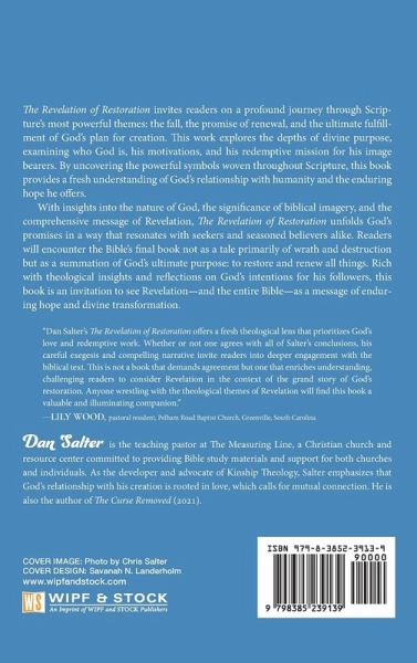The Revelation of Restoration invites readers on a profound journey through Scripture's most powerful themes: the fall, the promise of renewal, and the ultimate fulfillment of God's plan for creation. This work explores the depths of divine purpose, examining who God is, his motivations, and his redemptive mission for his image bearers. By uncovering the powerful symbols woven throughout Scripture, this book provides a fresh understanding of God's relationship with humanity and the enduring hope he offers. With insights into the nature of God, the significance of biblical imagery, and the comprehensive message of Revelation, The Revelation of Restoration unfolds God's promises in a way that resonates with seekers and seasoned believers alike. Readers will encounter the Bible's final book not as a tale primarily of wrath and destruction but as a summation of God's ultimate purpose: to restore and renew all things. Rich with theological insights and reflections on God's intentions for his followers, this book is an invitation to see Revelation--and the entire Bible--as a message of enduring hope and divine transformation.