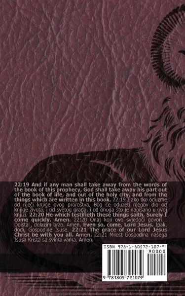 1:12 And I turned to see the voice that spake with me. And being turned, I saw seven golden candlesticks; 1:12 I okrenuh se da vidim glas koji je govorio sa mnom. I kad se okrenuh, vidjeh sedam zlatnih svijecnjaka; 1:13 And in the midst of the seven candlesticks one like unto the Son of man, clothed with a garment down to the foot, and girt about the paps with a golden girdle. 1:13 I usred sedam svijecnjaka jedan sličan Sinu Čovječjem, odjeven u dugu haljinu i opasan oko njedra zlatnim pojasom. 1:14 His head and his hairs were white like wool, as white as snow; and his eyes were as a flame of fire; 1:14 Glava mu i kosa bijela kao vuna, bijela kao snijeg; a oči su mu bile kao plamen ognjeni; 1:15 And his feet like unto fine brass, as if they burned in a furnace; and his voice as the sound of many waters. 1:15 A noge su mu bile poput mjedi, kao da u peci gore; a glas njegov kao sum voda mnogih. 1:16 And he had in his right hand seven stars: and out of his mouth went a sharp two edged sword: and his countenance was as the sun shineth in his strength. 1:16 Imao je u desnici sedam zvijezda, a iz usta mu je izlazio dvosjekli mač, a lice mu je bilo kao sunce koje sja u svojoj snazi. 1:17 And when I saw him, I fell at his feet as dead. And he laid his right hand upon me, saying unto me, Fear not; I am the first and the last: 1:17 I kad ga vidjeh, padoh k nogama njegovim kao mrtav. I polozi desnu ruku na me govoreci mi: Ne boj se! Ja sam prvi i posljednji: 1:18 I am he that liveth, and was dead; and, behold, I am alive for evermore, Amen; and have the keys of hell and of death. 1:18 Ja sam onaj koji zivi, a bio sam mrtav; i evo, ziv sam u vijeke vjekova, Amen; i imaju ključeve pakla i smrti.