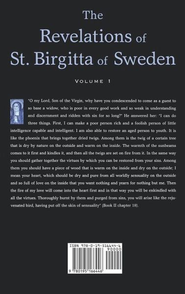 St. Birgitta of Sweden (1303-1373, canonized 1391) was one of the most charismatic and influential female visionaries of the later Middle Ages. Altogether, she received some 700 revelations, dealing with subjects ranging from meditations on the human condition, domestic affairs in Sweden, and ecclesiastical matters in Rome, to revelations in praise of the Incarnation and devotion to the Virgin. Her Revelations, collected and ordered by her confessors, circulated widely throughout Europe and long after her death. Many eminent individuals, including Cardinal Juan Torquemada, Jean Gerson, and Martin Luther, read and commented on her writings, which influenced the spiritual lives of countless individuals. Birgitta was also the founder of a new monastic order, which still exists today. She is the patron saint of Sweden, and in 2000 was declared (with Catherine of Siena and Edith Stein) co-patroness of Europe. Birgitta's Revelations present her as a commanding and dauntless visionary who develops a contemplative mysticism that is always interwoven with social engagement and a commitment to the salvation of the world. Their varied style is dominated by frequent juxtapositions of memorable images and allegories that illustrate her fierce and fertile imagination, her sharp powers of observation and understanding, and her passionate and receptive storytelling powers. This is the first of four projected volumes offering the first complete translation of the Revelations into English since the Middle Ages. This volume, which covers Books I-III of the Revelations, contains some of her earliest visions, dating from the 1340s. Book I addresses some of the major themes of herspirituality, and Books II and III contain a sustained critique of the classes of knights and bishops. The editors provide an extensive introduction outlining the major characteristics of Birgitta's spirituality, her life and work, her style and use of sources, and the main fe