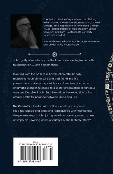 John, guilty of murder and at the brink of suicide, is given a path to redemption... or is it damnation? Diverted from the path of self-destruction after brutally murdering his unfaithful wife and best friend in a fit of passion, John is offered a possible road to redemption by an enigmatic stranger in service to a secret organization of righteous assassins. Deceived, John finds himself on the wrong side of the eternal battle for balance between Good and Evil. The Revelator is loaded with action, deceit, and suspense. It is a fast-paced and engaging read layered with nuance and deeper meaning. Is John just a pawn in a cosmic game of chess, or simply an unwitting victim or catalyst of The Butterfly Effect?