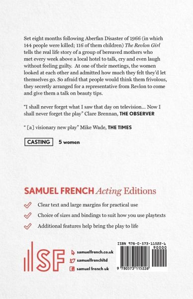 Set eight months following Aberfan Disaster of 1966 (in which 144 people were killed; 116 of them children) The Revlon Girl tells the real life story of a group of bereaved mothers who met every week above a local hotel to talk, cry and even laugh without feeling guilty. At one of their meetings, the women looked at each other and admitted how much they felt they'd let themselves go. So afraid that people would think them frivolous, they secretly arranged for a representative from Revlon to come and give them a talk on beauty tips.