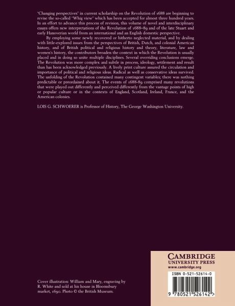 This volume of novel and interdisciplinary essays offers a new interpretation of the Revolution and of the late Stuart and early Hanoverian world. By dealing with little-explored issues from the perspectives of British, Dutch, and colonial American history, and of British political and religious history and theory, literature, law, and women's history, the contributors place the Revolution in a broader context and in doing so unite multiple disciplines. Several overriding conclusions emerge. The Revolution was more complex and subtle in process, ideology, settlement and result than has been acknowledged previously. A lively print culture assured the circulation and importance of political and religious ideas. Radical as well as conservative ideas survived. The events of 1688-89 comprised many revolutions that played out differently and were perceived differently from the vantage point of high or popular culture or in the contexts of England, Scotland, Ireland, France, and the American colonies.