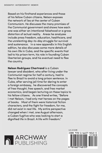 Based on his firsthand experiences and those of his fellow Cuban citizens, Nelson exposes the network of lies at the center of Cuban Communism. He discusses the many promises of the Communist government and shows how each one was either an intentional falsehood or a gross distortion of actual reality. Areas he analyzes include press freedom, education, healthcare, and the unrelenting day-to-day struggle for survival and sustenance. In a new appendix in this English edition, he also discusses some more details of his own life in Cuba, and the specific events that led to his prison term, his role in founding Cuban libertarian groups, and his eventual need to flee the country.