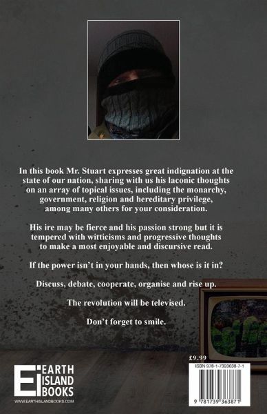 In this book Mr. Stuart expresses great indignation at the state of our nation, sharing with us his laconic thoughts on an array of topical issues, including the monarchy, government, religion and hereditary privilege, among many others for your consideration. His ire may be fierce and his passion strong but it is tempered with witticisms and progressive thoughts to make a most enjoyable and discursive read. If the power isn't in your hands, then whose is it in? Discuss, debate, cooperate, organise and rise up. The revolution will be televised. Don't forget to smile.