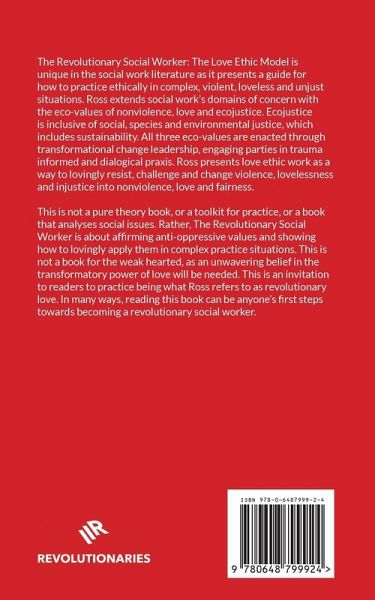 The Revolutionary Social Worker Series by Dyann Ross is based on the idea that a revolutionary is a loving, nonviolent and justice seeking citizen. The book title could as readily be the revolutionary citizen. However, the title, The Revolutionary Social Worker, brings a particular focus of the book series to the role social workers can play in modelling and enabling revolutionary change. The books show how the practice of being a revolutionary can look in specific relationships and contexts, and from the 'inside' of a profession that has potentially revolutionary goals. While the focus is on social workers, the term is inclusive of any profession and any citizen who seeks to enact the love ethic. Internationally, peaceful revolutionaries have shown that lovelessness, violence and injustice can be transformed by love, nonviolence and justice. They understand that where there is love there is no oppression. The series shows how to apply the love ethic model in interpersonal and inter-species relationships, organisations, the community and in situations of ecological conflict.