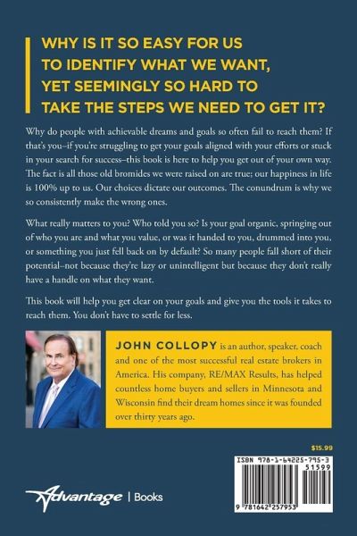 WHY IS IT SO EASY FOR US TO IDENTIFY WHAT WE WANT, YET SEEMINGLY SO HARD TO TAKE THE STEPS WE NEED TO GET IT? Why do people with achievable dreams and goals so often fail to reach them? If that's you - if you're struggling to get your goals aligned with your efforts or stymied in your search for success - this book is here to help you get out of your own way. The fact is all those old bromides we were raised on are true; our happiness in life is 100% up to us. Our choices dictate our outcomes. The conundrum is why we so consistently make the wrong ones. What really matters to you? Who told you so? Is your goal organic, springing out of who you are and what you value, or was it handed to you, drummed into you, or something you just fell back on by default? So many people fall short of their potential - not because they're lazy or unintelligent but because they don't really have a handle on what they want. This book will help you get clear on your goals and give you the tools it takes to reach them. You don't have to settle for less.