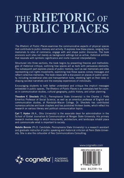 The Rhetoric of Public Places examines the communicative aspects of physical spaces that contribute to public memory and activity. It explores how these places, ranging from memorials to sites of commerce, engage with and shape public discourse. The book envisions such sites not merely as background settings but as active, rhetorical entities that resonate with symbolic significance and invite nuanced interpretations. Structured into three sections, the book begins by presenting theories and methodologies of rhetorical critique, outlining how spaces act as texts with persuasive elements. The subsequent part explores places of public memory, such as war memorials and sites representing civil rights movements, examining how these spaces convey messages and reflect collective memories. The book closes with a discussion on places of public activity, including recreational sites and transportation hubs, shedding light on their roles in shaping societal narratives and the everyday experiences of individuals. Encouraging students to both better understand and critique the implicit messages embedded in public spaces, The Rhetoric of Public Places is an exemplary text for courses in communication studies, cultural geography, public history, and urban planning.