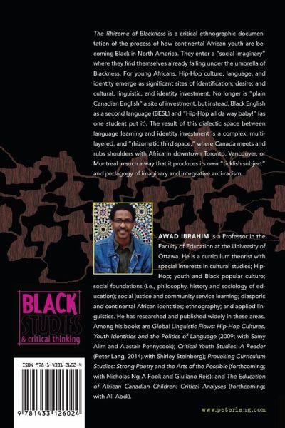 The Rhizome of Blackness is a critical ethnographic documentation of the process of how continental African youth are becoming Black in North America. They enter a «social imaginary» where they find themselves already falling under the umbrella of Blackness. For young Africans, Hip-Hop culture, language, and identity emerge as significant sites of identification; desire; and cultural, linguistic, and identity investment. No longer is «plain Canadian English» a site of investment, but instead, Black English as a second language (BESL) and «Hip-Hop all da way baby!» (as one student put it). The result of this dialectic space between language learning and identity investment is a complex, multilayered, and «rhizomatic third space,» where Canada meets and rubs shoulders with Africa in downtown Toronto, Vancouver, or Montreal in such a way that it produces its own «ticklish subject» and pedagogy of imaginary and integrative anti-racism.