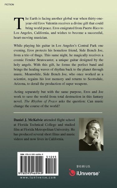 The Earth is facing another global war when thirty-one-year-old Eros Valentin receives a divine gift that could bring world peace. Eros emigrated from Puerto Rico to Los Angeles, California, and wishes to become a successful, heart-moving musician. While playing his guitar in Los Angeles's Central Park one evening, Eros protects his homeless friend, Side Bench Joe, from a trio of thugs. This same night, he magically receives a cosmic Fender Stratocaster, a unique guitar designed by the holy angels. With this gift, he forms the perfect band and brings the healing waves of rhythm back to the planet through music. Meanwhile, Side Bench Joe, who once worked as a scientist, regains his lost memory and returns to Scottsdale, Arizona, to derail the production of super weapons. Acting separately but with the same purpose, Eros and Joe work to save the world from total destruction in this fantasy novel. The Rhythm of Peace asks the question: Can music change the course of the world?