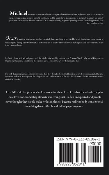 Michael starts out as someone who has been pushed out of every school he has ever been in because of an unknown reason that he keeps from his best friend and his family (even though some of his family members can already guess what the reason is). He and his friend Oscar move to the city to go find greener pastures. There they get more than they ever hoped for. Oscar is a driven young man who has essentially lost everything in his life. His whole family is no more instead of brooding and feeling sorry for himself he just carries on to live his life while always making sure that his best friend is safe from everyone harm. In the city Oscar and Michael get to work for a influential, wealthy business man Peterson Wander who has a liking to them the minute they meet. Their boss is the one that leaves a junk of money for them once he dies. But with that money comes a lot more problems than they thought about. Problems that aren't about money at all. The same issues that had them running from the village come back to haunt them in the city. They both take drastic measures to ensure each other's sanity.