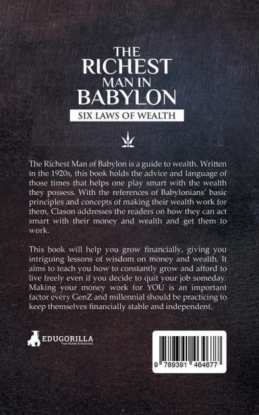 The Richest Man of Babylon is a guide to wealth. Written in the 1920s, this book holds the advice and language of those times that helps one play smart with their wealth. With the references of Babylonians' basic principles and concepts of making their wealth work for them, Clason addresses the readers on how they can act smart with their money and wealth and get them to work. This book will help you grow financially, giving you intriguing lessons of wisdom on money and wealth. It aims to teach you how to constantly grow and afford to live freely even if you decide to quit your job someday. Making your money work for YOU is an important factor every GenZ and millennial should be practicing to keep themselves financially stable and independent.