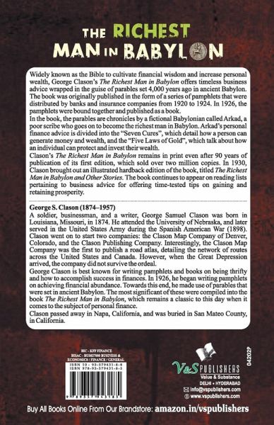 Widely known as the bible to cultivate financial wisdom and increase personal wealth, George Clason's The Richest Man in Babylon offers timeless business advice wrapped in the guise of parables set 4,000 years ago in ancient Babylon. The book was originally published in the form of a series of pamphlets that were distributed by banks and insurance companies from 1920 to 1924. In 1926, the pamphlets were bound together and published as a book. In the book, the parables are chronicles by a fictional Babylonian called Arkad, a poor scribe who goes on to become the richest man in Babylon. Arkad's personal finance advice is divided into the "Seven Cures", which detail how a person can generated money and wealth, and "Five Laws of Gold", which talk about how an individual can protect and invest their wealth. Clason's The Richest Man in Babylon remains in print even after 90 years of the publication of its first edition, which sold over two million copies. In 1930, Clason brought out an illustrated hardback edition of the book, titled The Richest Man in Babylon and Other Stories. The book continues to appear on reading lists pertaining to business advice for offering time-tested tips on gaining and retaining prosperity.