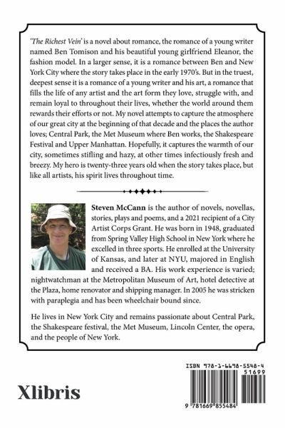 'The Richest Vein' is a novel about romance, the romance of a young writer named Ben Tomison and his beautiful young girlfriend Eleanor, the fashion model. In a larger sense, it is a romance between Ben and New York City where the story takes place in the early 1970's. But in the truest, deepest sense it is a romance of a young writer and his art, a romance that fills the life of any artist and the art form they love, struggle with, and remain loyal to throughout their lives, whether the world around them rewards their efforts or not. My novel attempts to capture the atmosphere of our great city at the beginning of that decade and the places the author loves; Central Park, the Met Museum where Ben works, the Shakespeare Festival and Upper Manhattan. Hopefully, it captures the warmth of our city, sometimes stifling and hazy, at other times infectiously fresh and breezy. My hero is twenty-three years old when the story takes place, but like all artists, his spirit lives throughout time.
