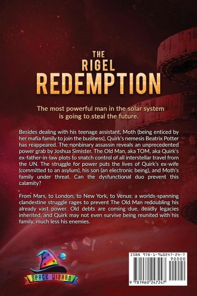 The most powerful man in the solar system is going to steal the future. Besides dealing with his teenage assistant, Moth (being enticed by her mafia family to join the business), Quirk's nemesis Beatrix Potter has reappeared. The nonbinary assassin reveals an unprecedented power grab by Joshua Simister. The Old Man, aka TOM, aka Quirk's ex-father-in-law plots to snatch control of all interstellar travel from the UN. The struggle for power puts the lives of Quirk's ex-wife (committed to an asylum), his son (an electronic being), and Moth's family under threat. Can the dysfunctional duo prevent this calamity? From Mars, to London, to New York, to Venus: a worlds-spanning clandestine struggle rages to prevent The Old Man redoubling his already vast power. Old debts are coming due, deadly legacies inherited, and Quirk may not even survive being reunited with his family, much less his enemies. Read the latest instalment of Quirk and Moth's adventures in The Rigel Redemption! Genres: Science Fiction / Thriller / Mystery / Adventure / LGBT and Non Binary Market: Adult