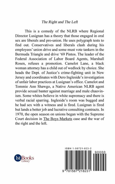 Besides resistance to unionization of NLRB employees, Smallwood's comic novel has government misfeasance, racism, sexism, Jewish history, a sting, big oil's federal assistance, a bugged hotel room, steamy sex, and black hookers picketing white prostitutes.