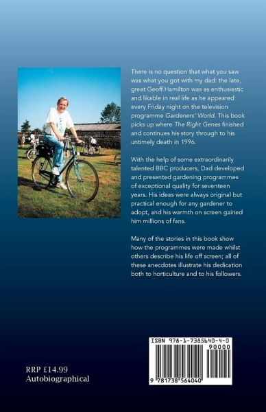 There is no question that what you got with my Dad; the late, great Geoff Hamilton, was what you got. In real life he was genuinely as enthusiastic and as lovely as he came across each and every Friday night on Gardeners' World. The story picks up from where The Right Genes finished and continues through to his untimely death in 1996. With the help of extraordinarily talented producers, over seventeen years they churned out programme after programme of infinite quality and many of the stories in this book will show how this was done. Others will show my dad off screen carrying on life in a manner he perceived as that of a "normal bloke". Some stories will surprise and I'm sure that some will shock, but the one guarantee is that all of them contributed to making, not just my Dad the man he was, but also the programme he fronted the best it has been.
