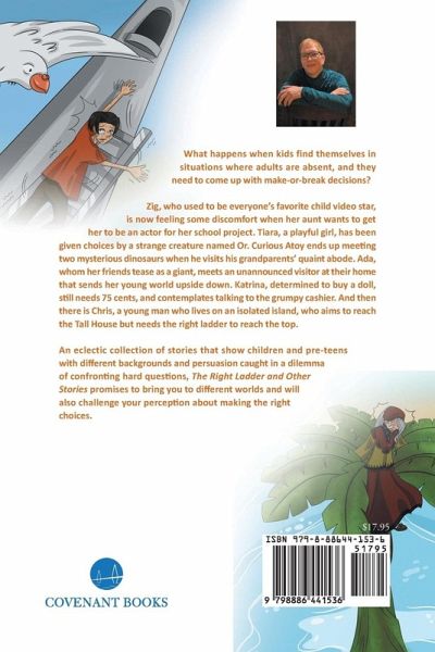 What happens when kids find themselves in situations where adults are absent, and they need to come up with make-or-break decisions? Zig, who used to be everyone's favorite child video star, is now feeling some discomfort when her aunt wants to get her to be an actor for her school project. Tiara, a playful girl, has been given choices by a strange creature named Or. Curious Atoy ends up meeting two mysterious dinosaurs when he visits his grandparents' quaint abode. Ada, whom her friends tease as a giant, meets an unannounced visitor at their home that sends her young world upside down. Katrina, determined to buy a doll, still needs 75 cents, and contemplates talking to the grumpy cashier. And then there is Chris, a young man who lives in an isolated island, who aims to reach the Tall House but needs the right ladder to reach the top. An eclectic collection of stories that show children and pre-teens with different backgrounds and persuasion caught in a dilemma of confronting hard questions, The Right Ladder and Other Stories promises to bring you to different worlds and will also challenge your perception about making the right choices.