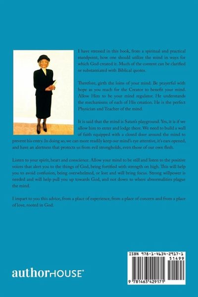 I have stressed in this book, from a spiritual and practical standpoint, how one should utilize the mind in ways for which God created it. Much of the content can be clarified or substantiated with Biblical quotes. Therefore, girth the loins of your mind. Be prayerful with hope as you reach for the Creator to benefit your mind. Allow Him to be your mind regulator. He understand the mechanisms of each of His creation. He is the perfect Physician and Teacher of the mind. It is said that the mind is Satan's playground. Yes, it is if we allow him to enter and lodge there. We need to build a wall of faith equipped with a closed door around the mind to prevent his entry. In doing so, we can more readily keep our mind's eye attentive, it's ears opened, and have an alertness that protects us from evil strongholds, even those of our own flesh. Listen to your spirit, heart and conscience. Allow your mind to be still and listen to the positive voices that alert you to the things of God, being fortified with strength on high. This will help you to avoid confusion, being overwhelmed, being lost and will bring focus. Strong willpower is needed and will help pull you up towards God, and not down to where abnormalities plague the mind. I impart to you this advice, from a place of experience, from a place of concern and from a place of love, rooted in God.
