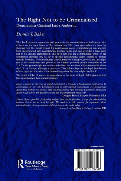This book presents arguments and proposals for constraining criminalization, with a focus on the legal limits of the criminal law. The book approaches the issue by showing how the moral criteria for constraining unjust criminalization can and has been incorporated into constitutional human rights and thus provides a legal right not to be unfairly criminalized. The book sets out the constitutional limits of the substantive criminal law. As far as specific constitutional rights operate to protect specific freedoms, for example, free speech, freedom of religion, privacy, etc, the right not to be criminalized has proved to be a rather powerful justice constraint in the U.S. Yet the general right not to be criminalized has not been fully embraced in either the U.S. or Europe, although it does exist. This volume lays out the legal foundations of that right and the criteria for determining when the state might override it. The book will be of interest to researchers in the areas of legal philosophy, criminal law, constitutional law, and criminology.