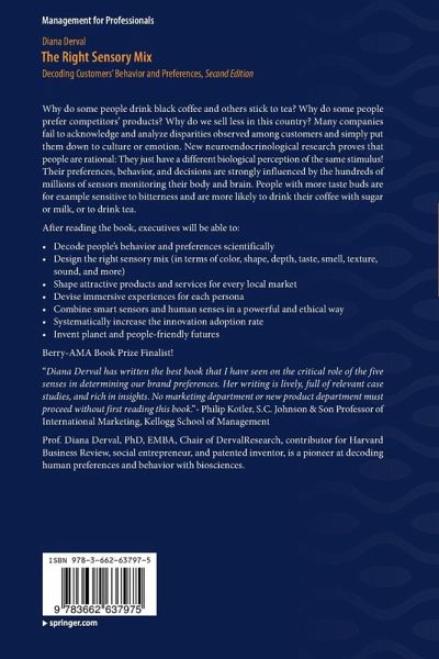 This book helps product managers, marketers, and corporate decision-makers understand and predict customers' behavior and preferences. It provides the tools to design the right sensory mix (color, shape, depth, taste, smell, texture, and sound) for each product, and fine-tune their positioning and range for every local market. Using cases from different sectors, the author shows that this approach delivers planet and people-friendly innovations which have a higher chance of success in the market.