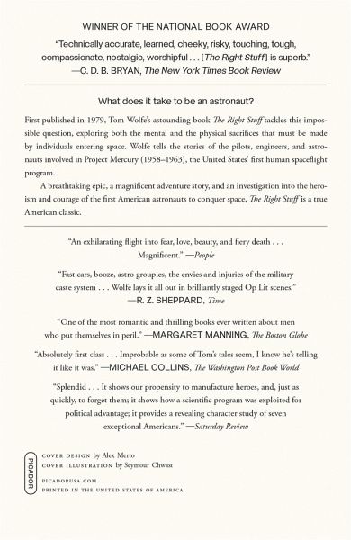 "What does it take to be an astronaut? First published in 1979, Tom Wolfe's astounding book The Right Stuff answers this question and more, exploring both the mental and the physical sacrifices that must be made by individuals entering space. Wolfe tells the stories of the pilots, engineers, and astronauts involved in Project Mercury (1958 1963), the United States' first human spaceflight program."--