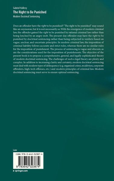 Does an offender have the right to be punished? "The right to be punished" may sound like an oxymoron, but it is not necessarily so. With the emergence of modern criminal law, the offender gained the right to be punished by rational criminal law rather than being lynched by an angry mob. The present-day offender may have the right to be punished by doctrinal sentencing rather than being subjected to verdicts based on vague, unclear, and uncertain principles. In modern criminal law, the imposition of criminal liability follows accurate and strict rules, whereas there are no similar rules for the imposition of punishment. The process of sentencing is vague and obscure, as are the considerations used for the imposition of punishments. The objective of the present book is to propose a comprehensive, general, and legally sophisticated theory of modern doctrinal sentencing. The challenges of such a legal theory are plenty and complex. In addition to increasing clarity and certainty, modern doctrinal sentencing must deal with modern types of delinquency (e.g. organized crime, recidivism, corporate offenders, high-tech offenses, etc.) and modern principles of criminal law. Modern doctrinal sentencing must serve to ensure optimal sentencing.