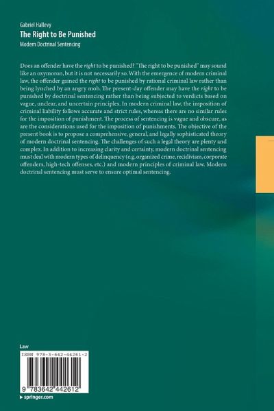 Does an offender have the right to be punished? "The right to be punished" may sound like an oxymoron, but it is not necessarily so. With the emergence of modern criminal law, the offender gained the right to be punished by rational criminal law rather than being lynched by an angry mob. The present-day offender may have the right to be punished by doctrinal sentencing rather than being subjected to verdicts based on vague, unclear, and uncertain principles. In modern criminal law, the imposition of criminal liability follows accurate and strict rules, whereas there are no similar rules for the imposition of punishment. The process of sentencing is vague and obscure, as are the considerations used for the imposition of punishments. The objective of the present book is to propose a comprehensive, general, and legally sophisticated theory of modern doctrinal sentencing. The challenges of such a legal theory are plenty and complex. In addition to increasing clarity and certainty, modern doctrinal sentencing must deal with modern types of delinquency (e.g. organized crime, recidivism, corporate offenders, high-tech offenses, etc.) and modern principles of criminal law. Modern doctrinal sentencing must serve to ensure optimal sentencing.