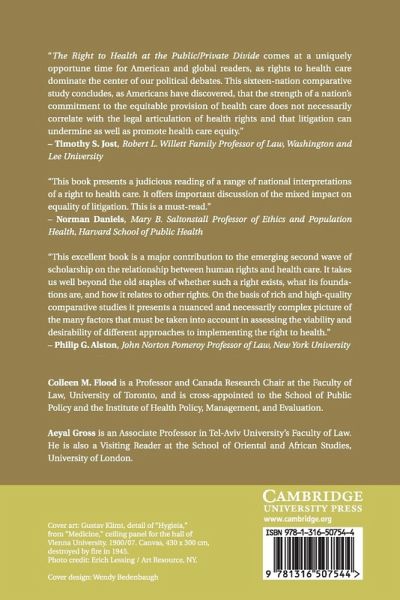 Introduction: marrying human rights and health care systems: contexts for a power to improve access and equity Colleen M. Flood and Aeyal Gross; Part I. National Public Health Systems (Tax Financed): 1. Litigating a right to healthcare in New Zealand Joanna Manning; 2. The right to health in Sweden Anna-Sara Lind; 3. Litigating health rights in Canada: a white knight for equity? Colleen M. Flood; 4. Promoting access and equity in health - assessing the National Health Service in England Chris Newdick; Part II. Social Health Insurance Systems: 5. Colombia's right to health litigation in a context of healthcare reform Everaldo Lamprea; 6. Health rights in Israel between solidarity and neo-liberalism Aeyal Gross; 7. Health care access in the Netherlands: the true story Andre den Exter; 8. Addressing equity in health care at the public-private intersection: the role of health rights enforcement in Hungary Maria Eva Foldes; 9. Lending a helping hand: the impact of constitutional interpretation on Taiwan's national health insurance program, health equity and distributive justice Y. Y. Chen; Part III. Mixed Private/Public Systems: 10. Health rights at the juncture between state and market: the People's Republic of China Christina S. Ho; 11. The role of rights and litigation in assuring more equitable access to health care in South Africa Lisa Forman and Jerome Amir Singh; 12. Provision of health care services and the right to health in Brazil: the long, winding and uncertain road to equality Mariana Prado; 13. A vision of an emerging right to health care in the United States: expanding health care equity through legislative reform Allison Hoffman; 14. The legal protection and enforcement of health rights in Nigeria Remigius Nwabueze; 15. Litigating the right to health in Venezuela: a non-justiciable right (?) in the context of a deficient health care system Oscar A. Cabrera and Fanny Gómez; 16. Right to health in India: addressing inequities through litigation Anand Grover, Maitreyi Misra and Lubhyathi Rangarajan; Conclusion: context for the promise and peril of the right to health Colleen M. Flood and Aeyal Gross.