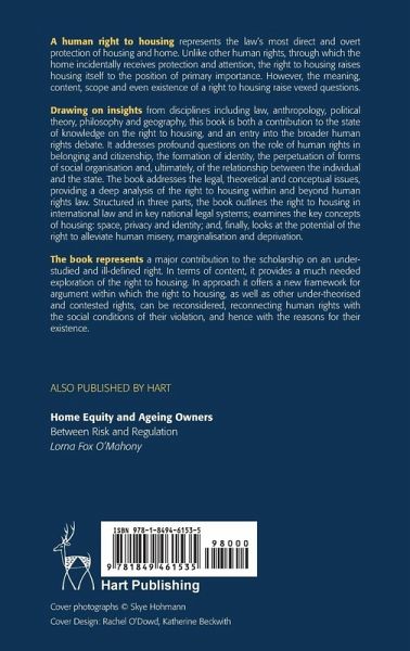 A human right to housing represents the law's most direct and overt protection of housing and home. Unlike other human rights, through which the home incidentally receives protection and attention, the right to housing raises housing itself to the position of primary importance. However, the meaning, content, scope and even existence of a right to housing raise vexed questions. Drawing on insights from disciplines including law, anthropology, political theory, philosophy and geography, this book is both a contribution to the state of knowledge on the right to housing, and an entry into the broader human rights debate. It addresses profound questions on the role of human rights in belonging and citizenship, the formation of identity, the perpetuation of forms of social organisation and, ultimately, of the relationship between the individual and the state. The book addresses the legal, theoretical and conceptual issues, providing a deep analysis of the right to housing within and beyond human rights law. Structured in three parts, the book outlines the right to housing in international law and in key national legal systems; examines the most important concepts of housing: space, privacy and identity and, finally, looks at the potential of the right to alleviate human misery, marginalisation and deprivation. The book represents a major contribution to the scholarship on an under-studied and ill-defined right. In terms of content, it provides a much needed exploration of the right to housing. In approach it offers a new framework for argument within which the right to housing, as well as other under-theorised and contested rights, can be reconsidered, reconnecting human rights with the social conditions of their violation, and hence with the reasons for their existence. Shortlisted for The Peter Birks Prize for Outstanding Legal Scholarship 2013.
