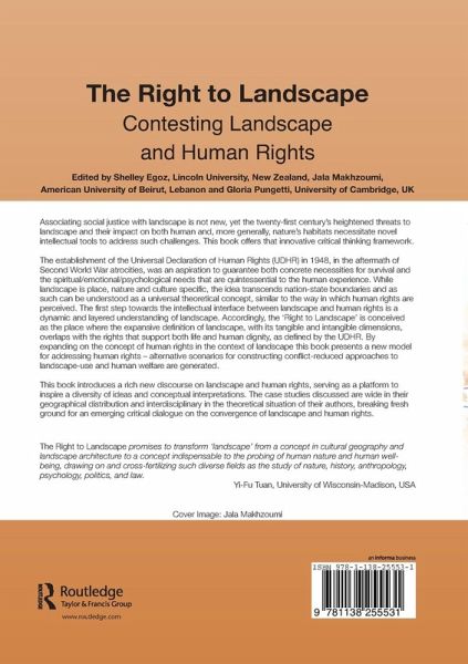 Associating social justice with landscape is not new, yet the twenty-first century's heightened threats to landscape and their impact on both human and, more generally, nature's habitats necessitate novel intellectual tools to address such challenges. This book offers that innovative critical thinking framework. The establishment of the Universal Declaration of Human Rights (UDHR) in 1948, in the aftermath of Second World War atrocities, was an aspiration to guarantee both concrete necessities for survival and the spiritual/emotional/psychological needs that are quintessential to the human experience. While landscape is place, nature and culture specific, the idea transcends nation-state boundaries and as such can be understood as a universal theoretical concept similar to the way in which human rights are perceived. The first step towards the intellectual interface between landscape and human rights is a dynamic and layered understanding of landscape. Accordingly, the 'Right to Landscape' is conceived as the place where the expansive definition of landscape, with its tangible and intangible dimensions, overlaps with the rights that support both life and human dignity, as defined by the UDHR. By expanding on the concept of human rights in the context of landscape this book presents a new model for addressing human rights - alternative scenarios for constructing conflict-reduced approaches to landscape-use and human welfare are generated. This book introduces a rich new discourse on landscape and human rights, serving as a platform to inspire a diversity of ideas and conceptual interpretations. The case studies discussed are wide in their geographical distribution and interdisciplinary in the theoretical situation of their authors, breaking fresh ground for an emerging critical dialogue on the convergence of landscape and human rights.
