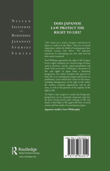 The Right to Life in Japan is a study that brings new perspectives to bear on an extremely important topic for all those facing the moral dilemmas of such issues as abortion and the death penalty. It also helps to fill a gap in life, in social science and law studies of contemporary Japan. Noel Williams approaches the right to life in Japan from a legal viewpoint via a broad range of issues such as abortion, suicide, capital punishment and death from overwork. Following a discussion of law and rights in Japan from an historical perspective, the author examines the question of what life is in contemporary Japan and focuses on problematic areas which have arisen in life issues, including infringements of the right to life within the modern company organization, and by the state, as well as the question of the equality of the right to life.