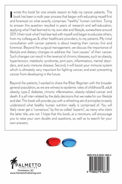 It is nearly impossible today for the average person to understand what comprises a "healthy" human diet & lifestyle. The Riker Regimen provides you with the latest information about how our lifestyles and diet are contributing to our poor overall health. Dr. Riker provides a common-sense approach to optimal human nutrition and lifestyle, resulting in lifelong benefits of improved overall physical and mental wellness. We are witnessing an unprecedented epidemic of childhood & adult obesity, type-2 diabetes, chronic inflammation, immune dysfunction, auto-immune disease, mental disorders and obesity-related cancers. The very root cause of every one of these conditions can be directly related to the food & lifestyle choices that we make each day. As physicians, we were trained to treat disease, but never taught to understand the root cause of disease states, such as diabetes, obesity and even cancer. My goal with The Riker Regimen is to provide you with the necessary resources and evidence of how to eat, live and exercise towards a healthier, and happier version of yourself, both mentally and physically. Written by acclaimed author, researcher, speaker, and surgical oncologist, Dr. Adam I. Riker, along with exercise coach Jody Raymond, The Riker Regimen was originally developed to help cancer patients boost their immune system to help fight their cancer. These dietary and lifestyle changes also helped to improve, and often eliminate, these "co-morbid" conditions. Dr. Riker does not claim to be the authority on human nutrition, rather he has integrated the best available data on human nutrition, to easily understand and implement these changes to your life. He encourages you to question the so-called "experts", always inviting readers to doubt and question. In the end, it is YOU who must take ownership & responsibility for your own health. It is a lifestyle, not a diet.