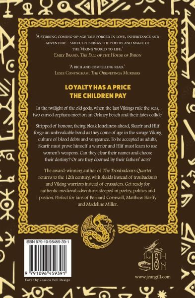 'A skilfully written, beautifully researched coming-of-age story set in Viking Orkney. A rich and compelling read.' Lexie Conyngham, the Orkneyinga Murders series Loyalty has a price the children pay In the twilight of the old gods, when the last Vikings rule the seas, two cursed orphans meet on an Orkney beach and their fates collide. Stripped of honour, facing bleak loneliness ahead, Skarfr and Hlif forge an unbreakable bond as they come of age in the savage Viking culture of blood debts and vengeance. To be accepted as adults, Skarfr must prove himself a warrior and Hlif must learn to use women's weapons. Can they clear their names and choose their destiny? Or are they doomed by their fathers' acts? The award-winning author of The Troubadours Quartet returns to the 12th century, with skalds instead of troubadours and Viking warriors instead of crusaders. Get ready for authentic medieval adventures steeped in poetry, politics and passion. Perfect for fans of Bernard Cornwell Matthew Harffy and Madeline Miller. 'A stirring coming-of-age tale forged in love, inheritance and adventure - in 'The Ring Breaker' Jean Gill skilfully brings the poetry and magic of the Viking world to life.' Emily Brand, The Fall of the House of Byron 'Absolutely brilliant. A tour-de-force of storytelling, Viking lore, and the rugged landscape of Orkney. This was one of the highlights of my reading year. The characters of Hlif and Skarfr are brave, resourceful and intelligent and I Ioved them both. I can't wait for their next sea-faring adventure.' Deborah Swift, Italian Renaissance series