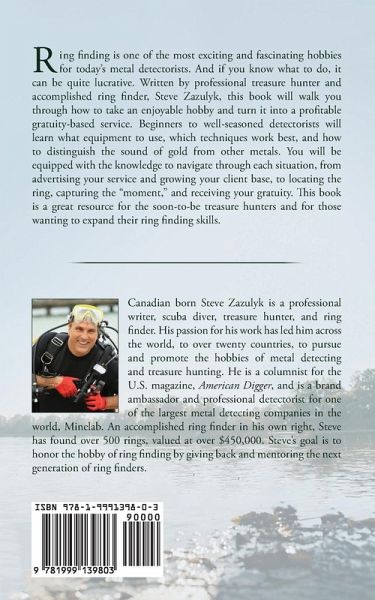 Book Description: Ring finding is one of the most exciting and fascinating hobbies for today's metal detectorists. And if you know what to do, it can be quite lucrative. Written by professional treasure hunter and accomplished ring finder, Steve Zazulyk, this book will walk you through how to take an enjoyable hobby and turn it into a profitable gratuity-based service. Beginners to well-seasoned detectorists will learn what equipment to use, which techniques work best, and how to distinguish the sound of gold from other metals. You will be equipped with the knowledge to navigate through each situation, from advertising your service and growing your client base, to locating the ring, capturing the "moment," and receiving your gratuity. This book is a great resource for the soon-to-be treasure hunters and for those wanting to expand their ring finding skills.