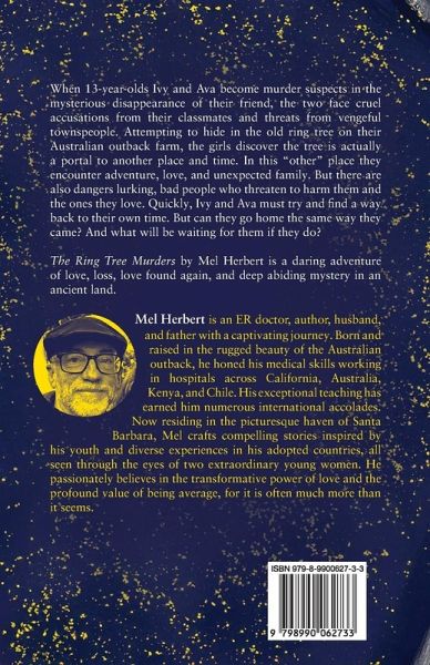 A daring adventure of love, loss, love found again, and deep abiding mystery in an ancient land. Thirteen-year-old Ivy and Ava watch in horror as their friend Brett mysteriously disappears while swimming in the river near their Australian outback farm. The girls soon discover they are suspects in his murder and must endure the taunts and accusations of their schoolmates. Desperate to escape, Ava climbs the massive ring tree on their farm, an ancient landmark believed to be from another time and place. Ivy watches from below as Ava spreads her arms and jumps from the tree...then disappears. Ivy is heartbroken but finds no comfort at home with a mother who starts drinking in the mornings to forget her own pain. Her only choice is to search for Ava. She stumbles on a clue from the past in an old shack by the river, one that points back to the ring tree where Ava disappeared. The tree is the answer, it says. The ring tree, Ivy discovers, is a portal to another place and time that she must enter to find the answers she's looking for. In this "other" place she encounters adventure, love, friendship, and unexpected family. But there are dangers lurking, bad people who threaten to harm the ones Ivy loves most. Quickly, Ivy and her friends must try and find a way back to their own time. But can they go home the same way they came? And what will be waiting for them if they do?