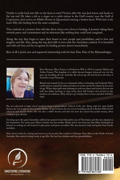 Jack arrives on Mable Downs in Queensland nursing a broken heart. With him is his mate Alby also healing from the same thing. Both, not long home from the war they embark on a journey that will take them closer, ever closer to this healing. A journey towards peace and contentment. An adventure like nothing they could have imagined. Along the way they begin to open their hearts to new people and possibilities, to love and laughter and joy. Wayne the station manager knows exactly how they feel as he is a digger from WW1. As Jack embarks on this new life he falls in love with the Australian outback, the top end. It is beautiful, wild, and free, and he recognises its healing powers almost immediately. Best of all is Jack's new and improved relationship with his hero Dan. Dan of the Murrumbidgee.